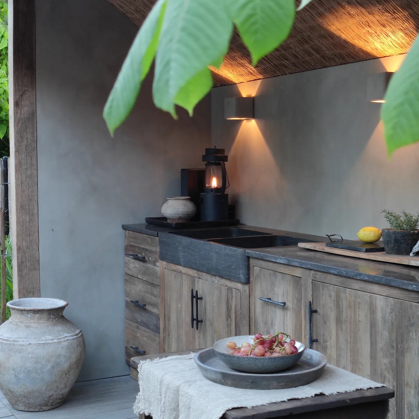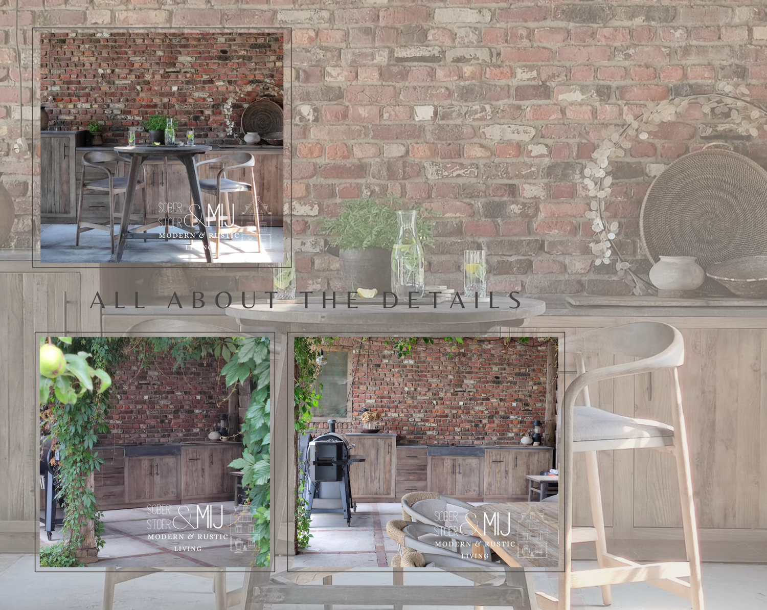 Deze landelijke keuken is verkrijgbaar in 2 maten, hiermee creëer je een ware blikvanger. Het prachtige contrast tussen het verouderde hout en granieten blad met dubbele spoelbak geven je die rustieke look & feel