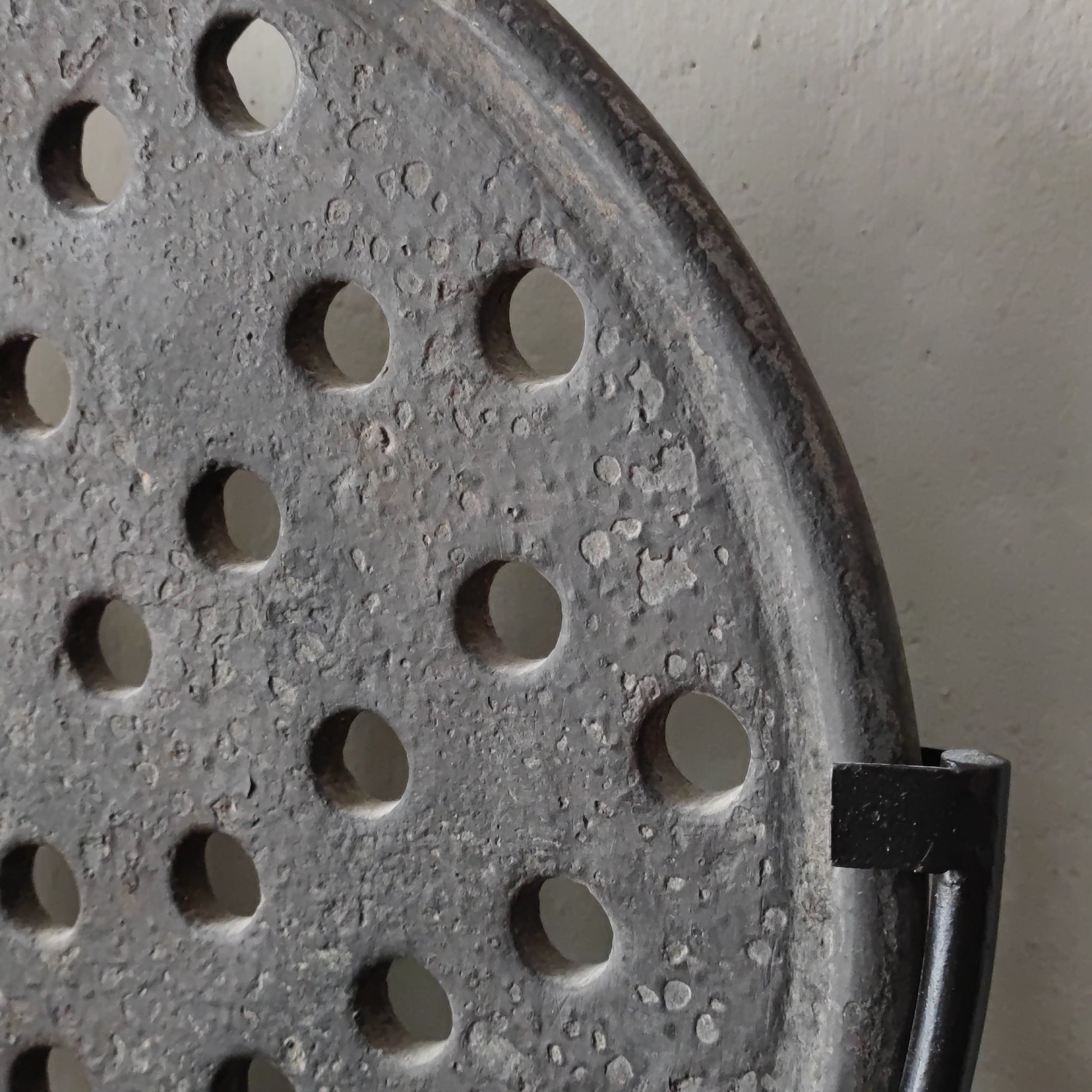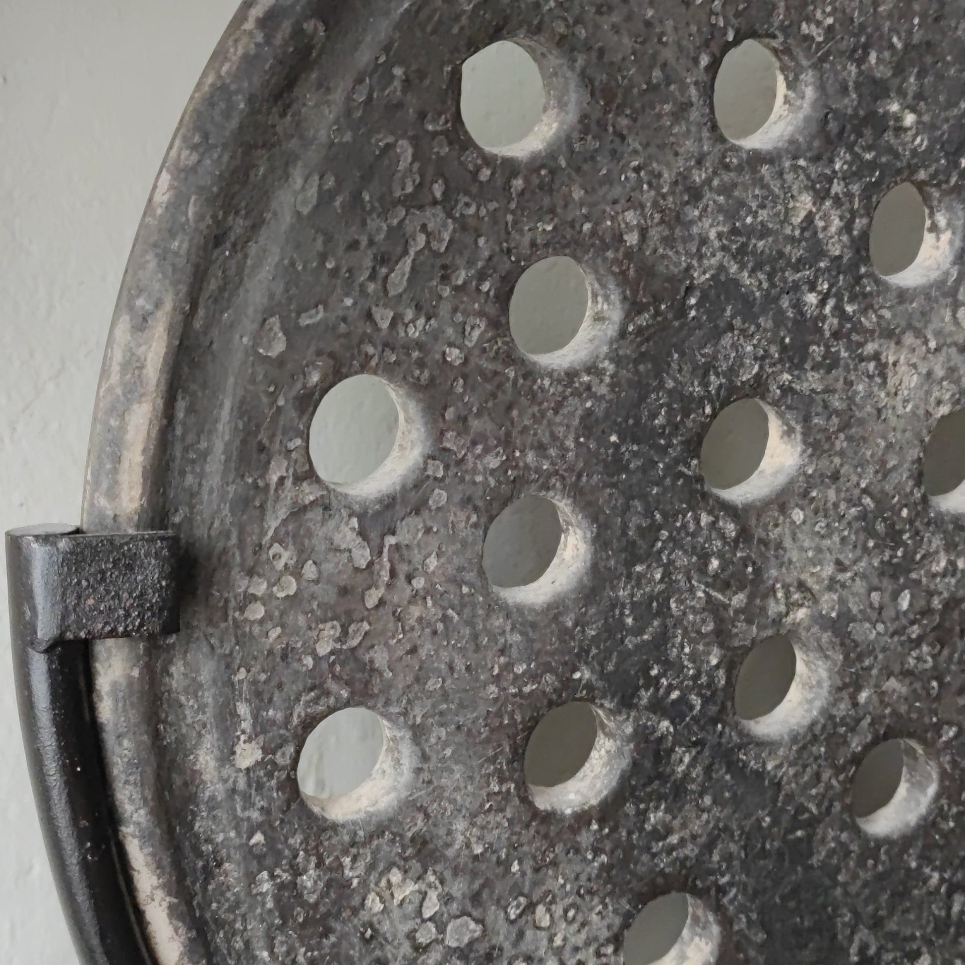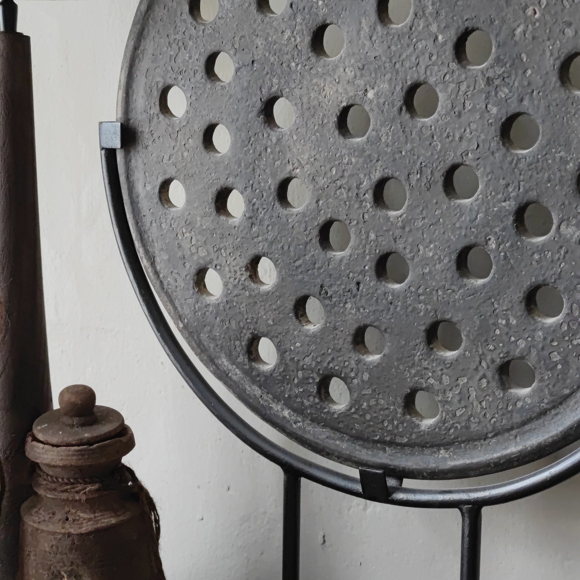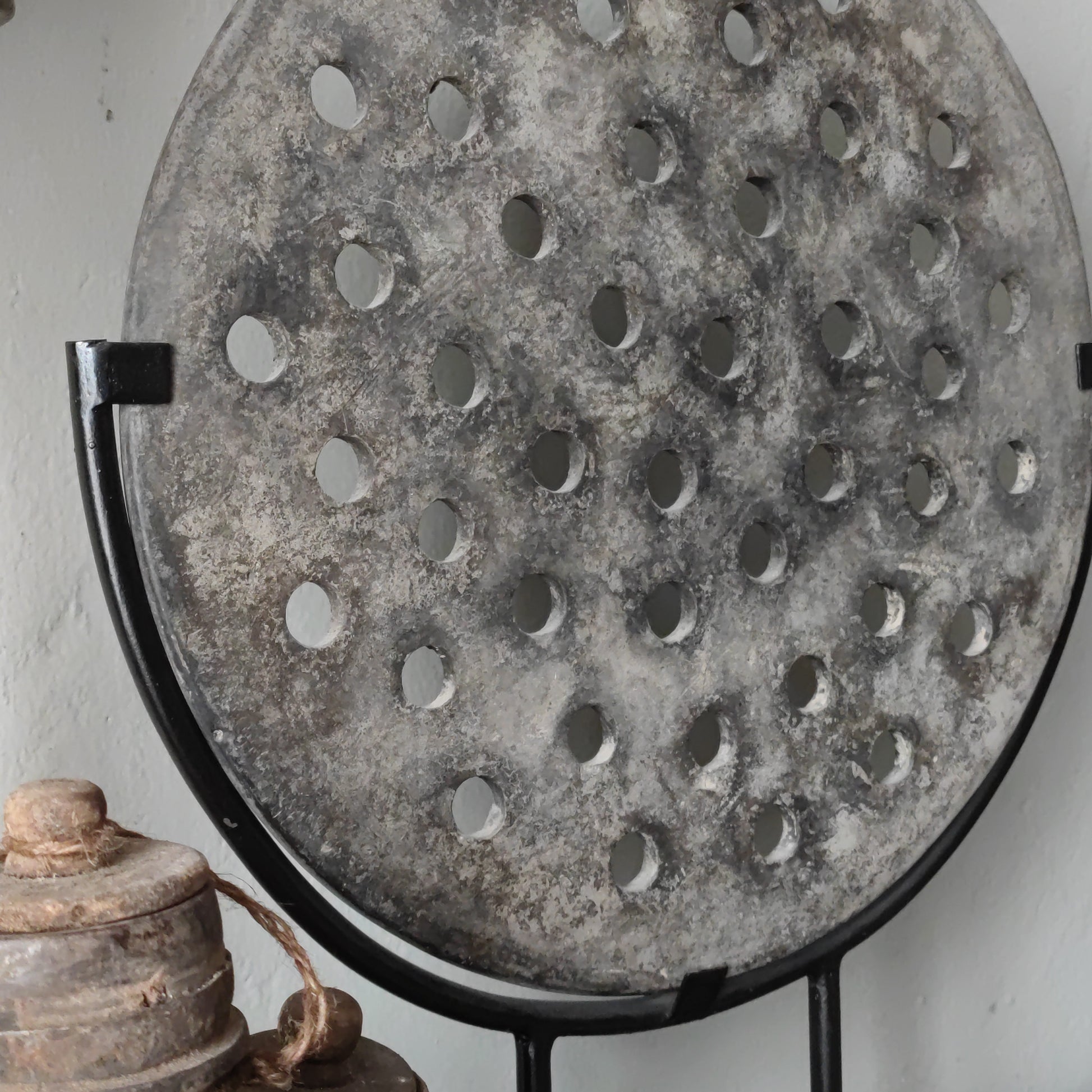 Prachtig is deze unieke oude steenmal op zwart metalen voet.