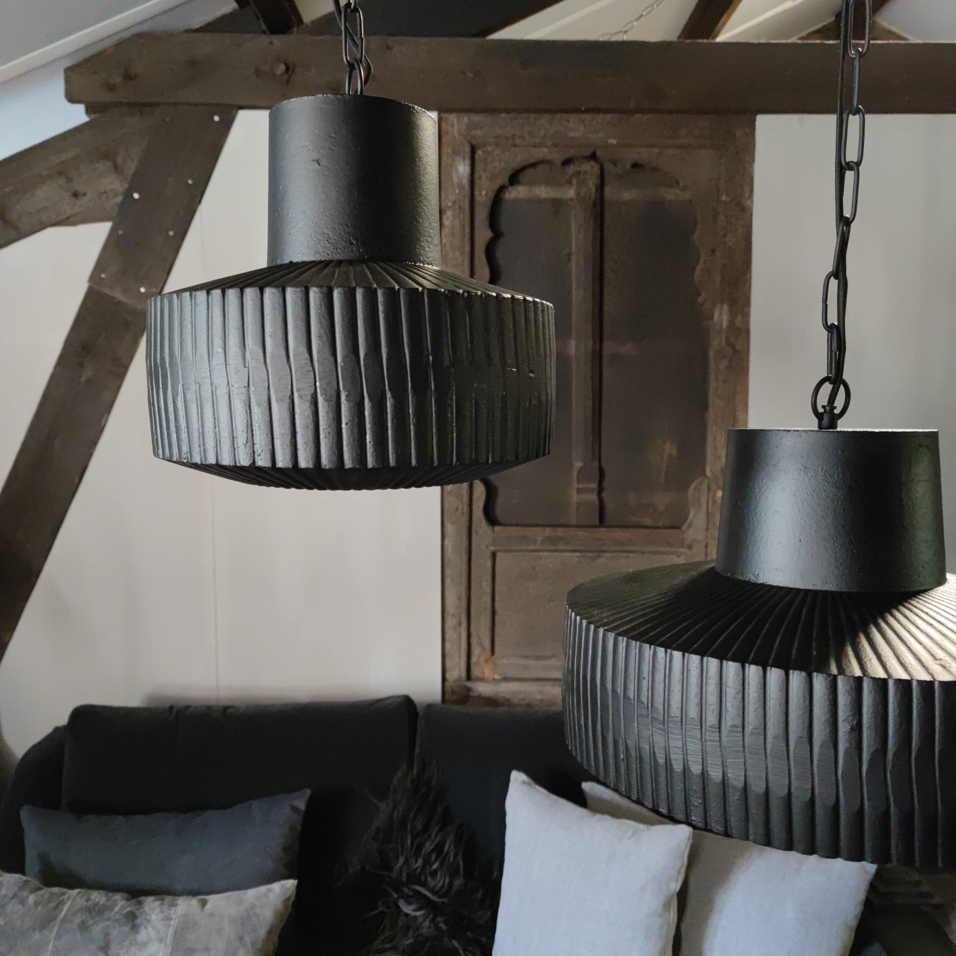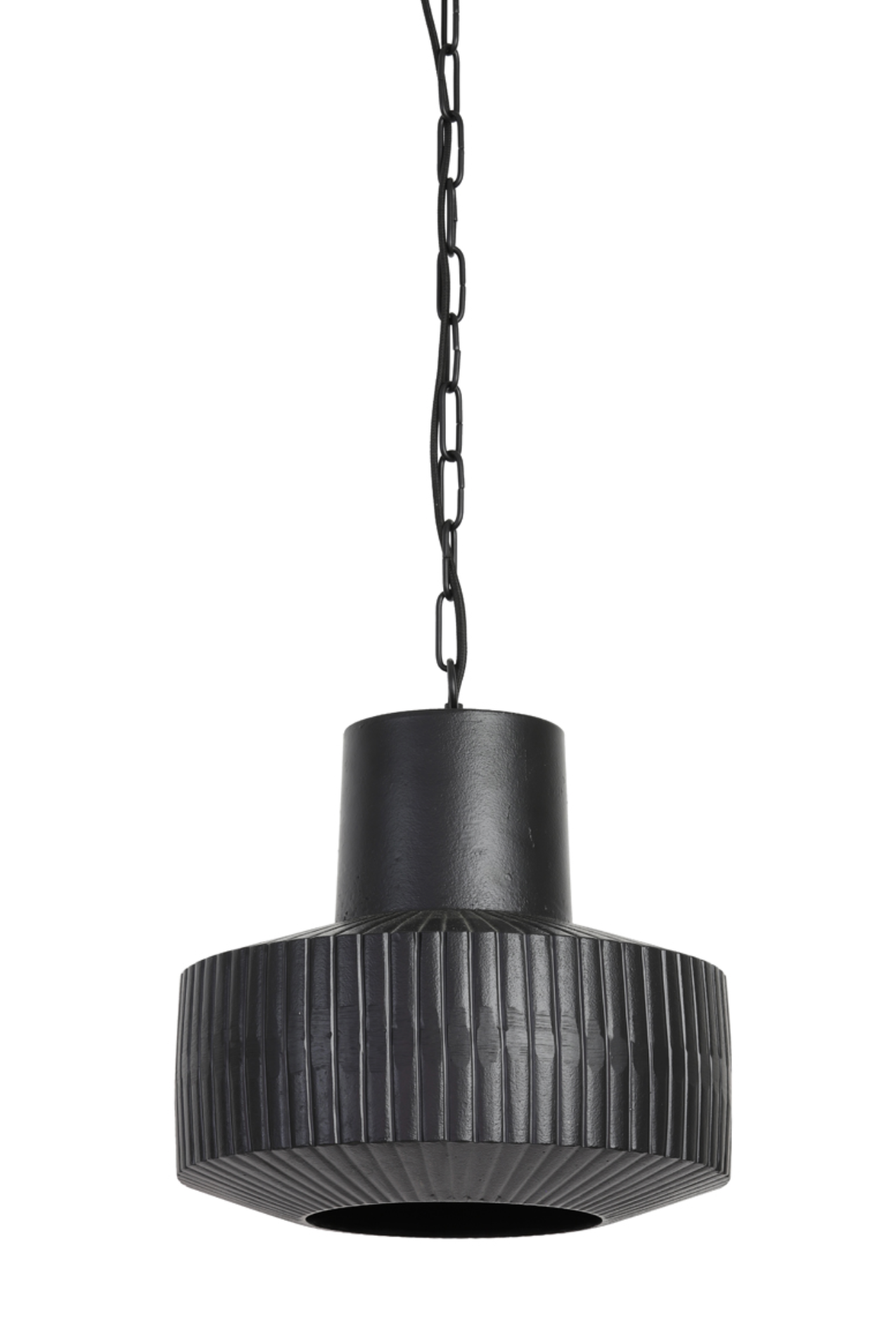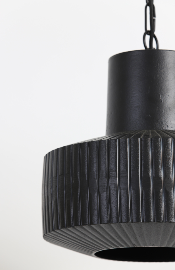 Prachtige stoere maar ook moderne hanglamp van mat zwart metaal