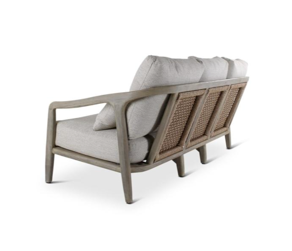 Materiaal: (vergrijsd )Teak, naturel/beige weving en naturel outdoor Stof & kussens