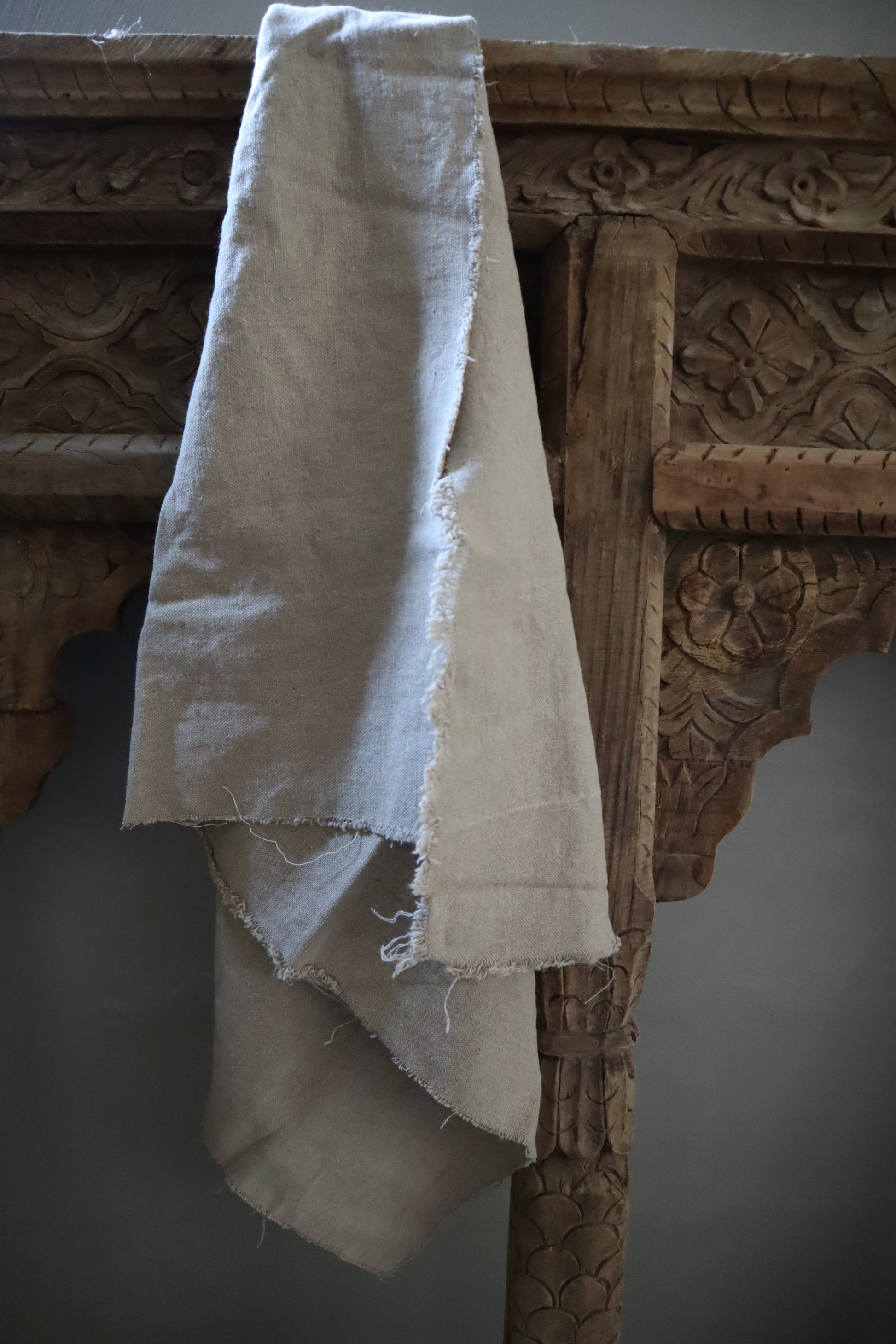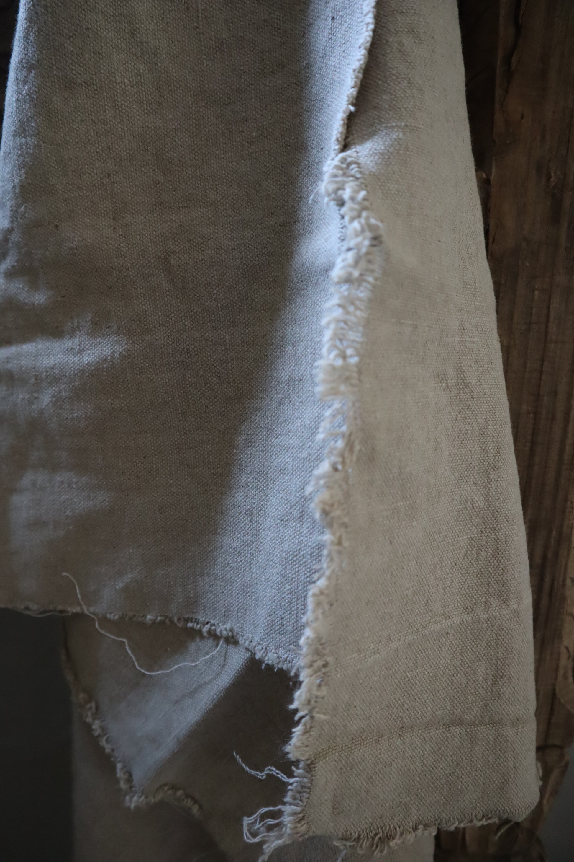 Gerafelde raw linnen doek 70 x 70 cm