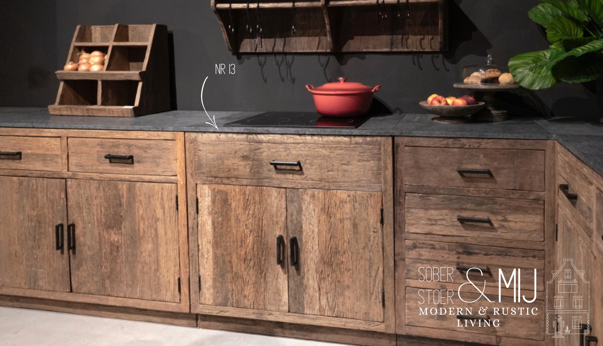 Algemene informatie; Een bijzondere én functionele eye-catcher, het prachtige contrast tussen het rustieke hout en granieten blad zorgen voor een bijzondere uitstraling en met 95 cm hoogte heeft de keuken een ideale werkhoogte. De ruime keuze aan verschillende elementen zijn nauwkeurig samengesteld op basis van de meest gangbare afmetingen en lade/deur verdeling. Bovendien zijn de elementen stuk voor stuk ook aan de zijkanten afgewerkt, waardoor eigenlijk élke opstelling en samenstelling mogelijk is. Mix & match de ideale samenstelling, natuurlijk inclusief de granieten bladen en bij het spoelbak-meubel inclusief de granieten (verlijmde) spoelbak en voorzien van een kraan en sifon gat, liever zonder kraangat ? Dat is ook mogelijk. Het granieten blad kan behandelen worden met een los verkrijgbare impregneer voor graniet.
